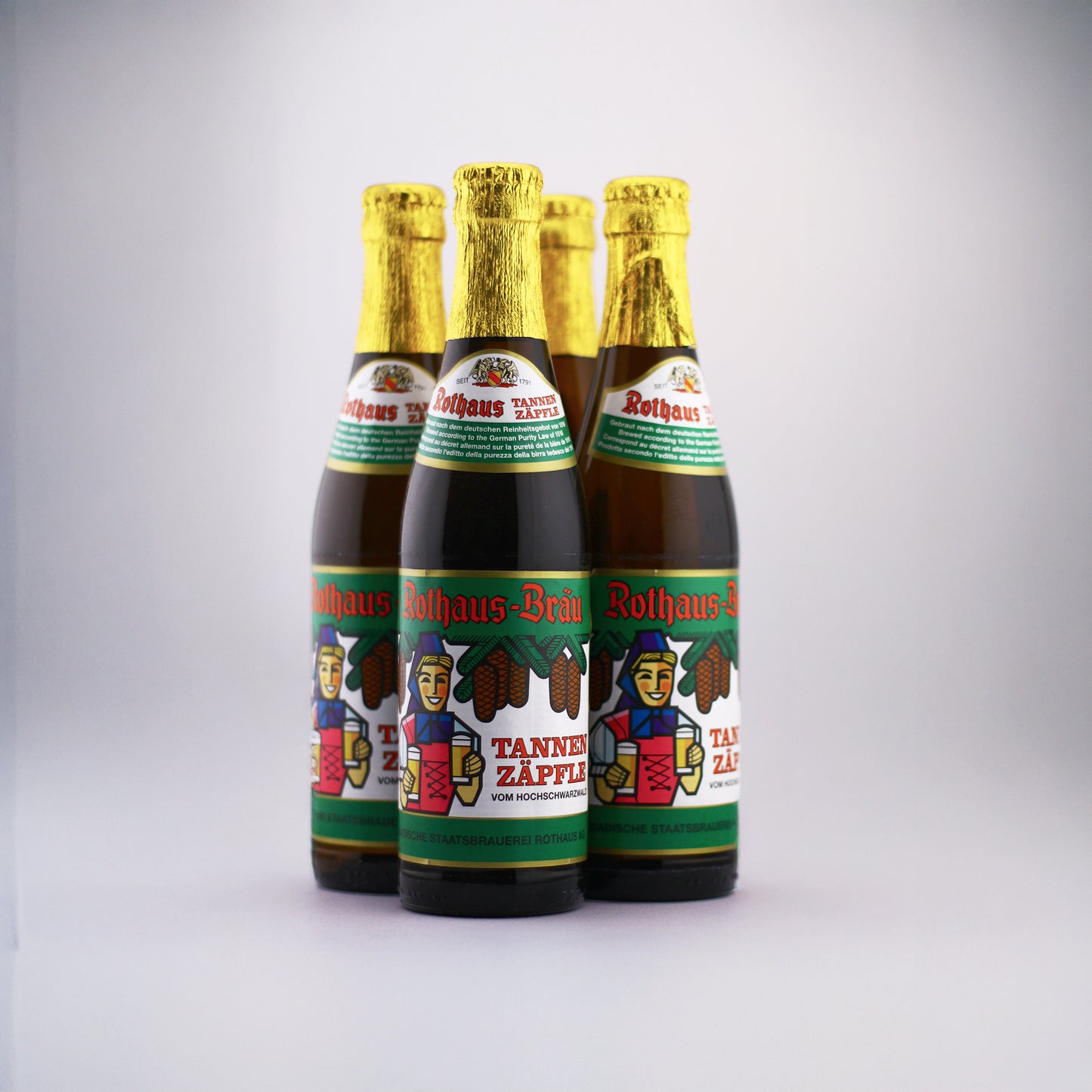 The finest aroma hops from Tettnang and the Hallertau, local malt from summer barley, and the purest spring water from the High Black Forest give every Rothaus Pils Tannenzäpfle its uniquely spicy and fresh flavor.